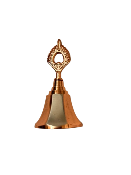 Dual Tone Copper and Silver Designer Metal Bell – Elegant Puja Accessory (8cm Height)