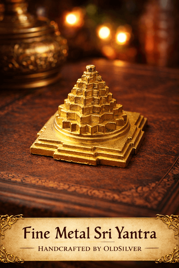 Invite divine energy and prosperity into your space with this Gold-Plated Metal Shree Yantra, a powerful symbol of sacred geometry and spiritual harmony. Intricately crafted in metal and finished with radiant gold plating, this compact yantra is ideal for daily pooja, meditation altars, vastu remedies, and spiritual gifting.
