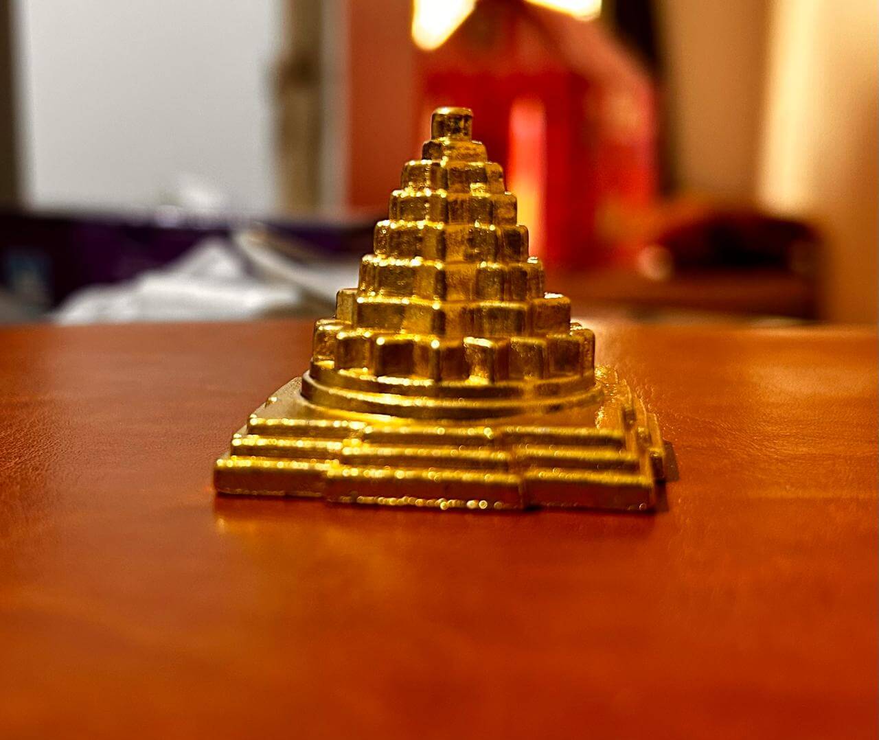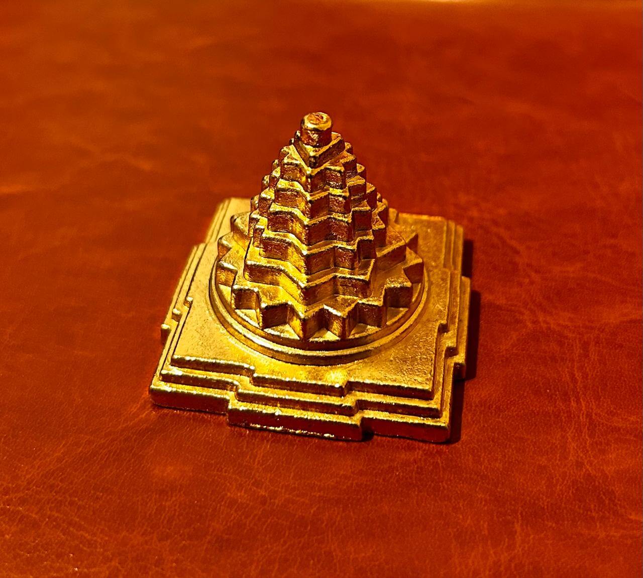 Beautifully crafted gold-plated Shree Yantra in metal. Ideal for pooja, meditation, gifting, and vastu correction.