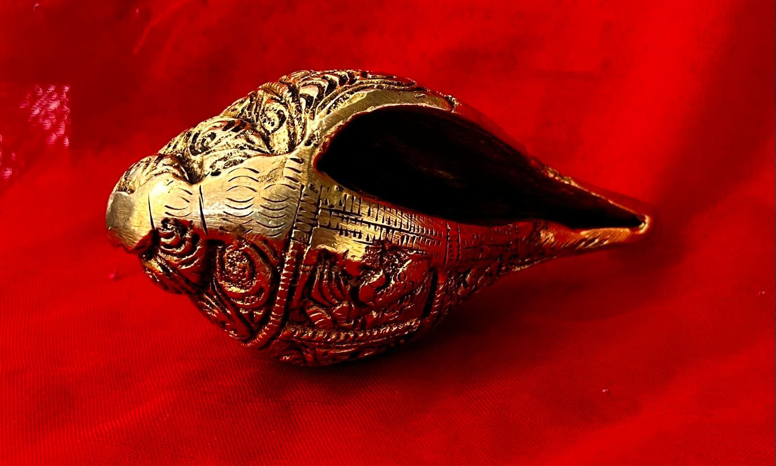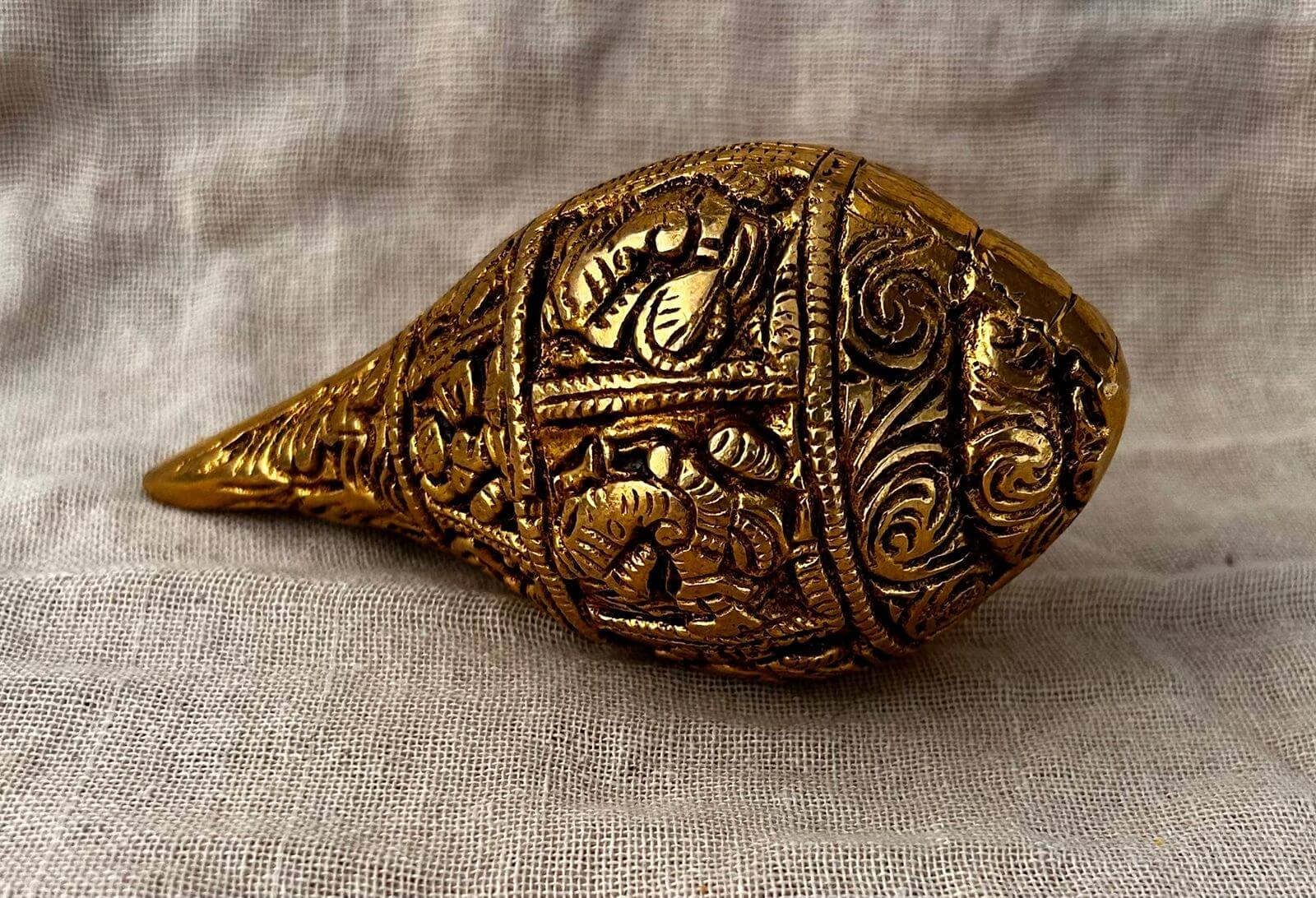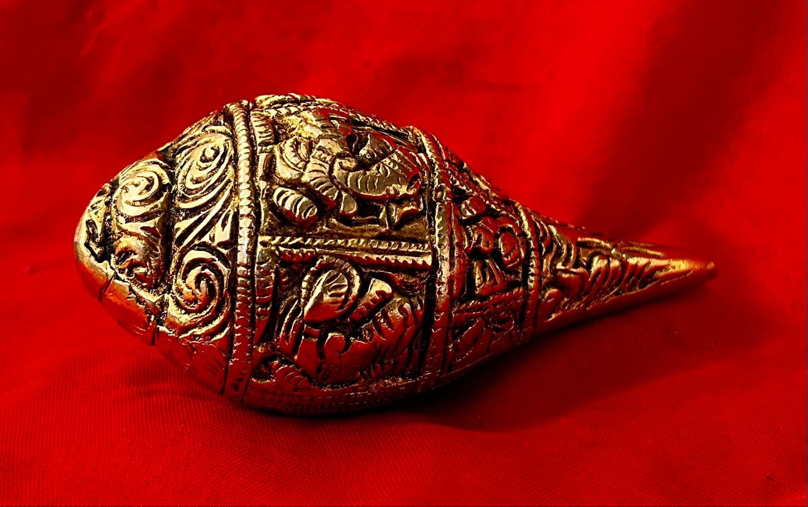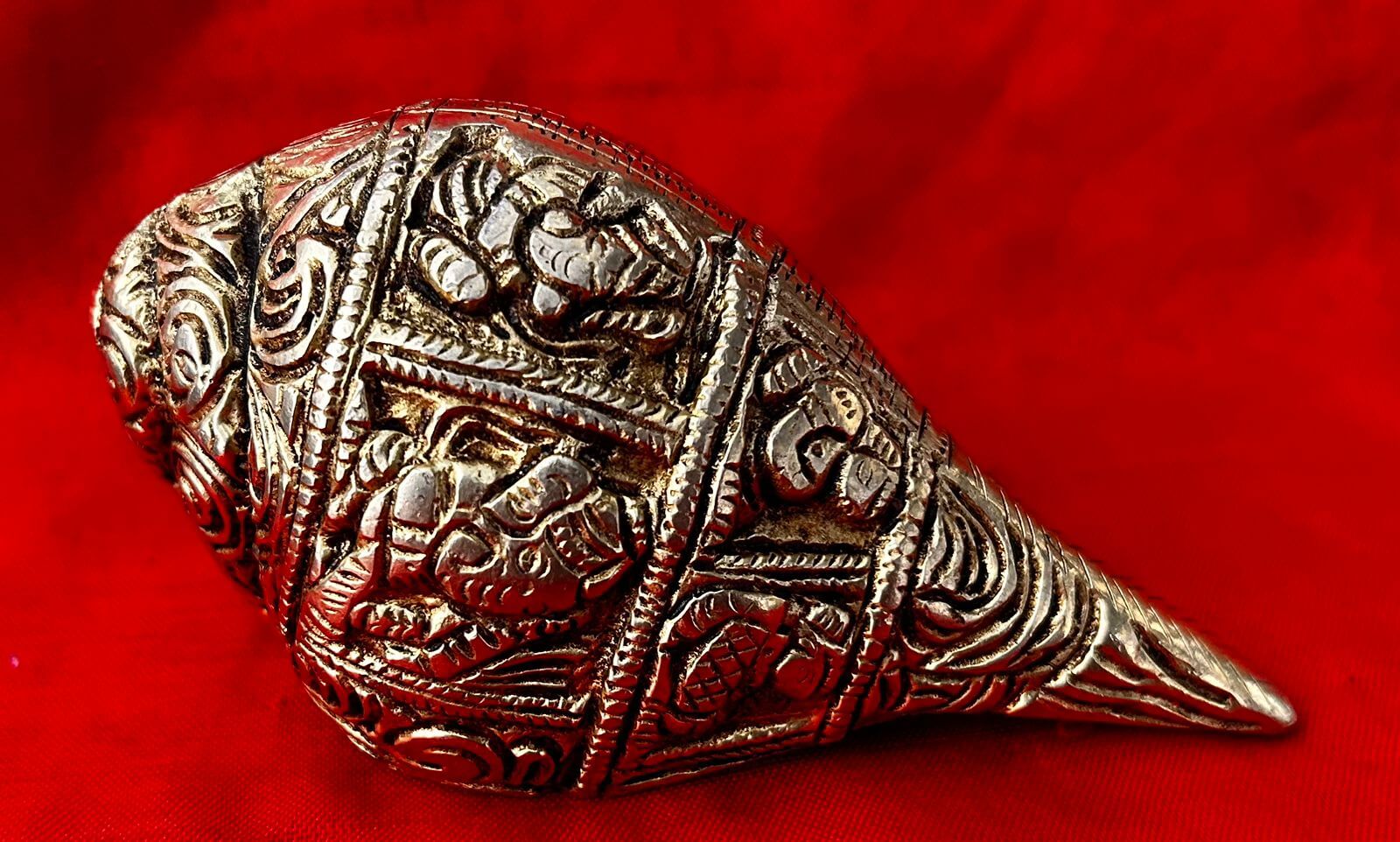 - Design: Conch shell with embossed Lord Ganesh motif and traditional carvings