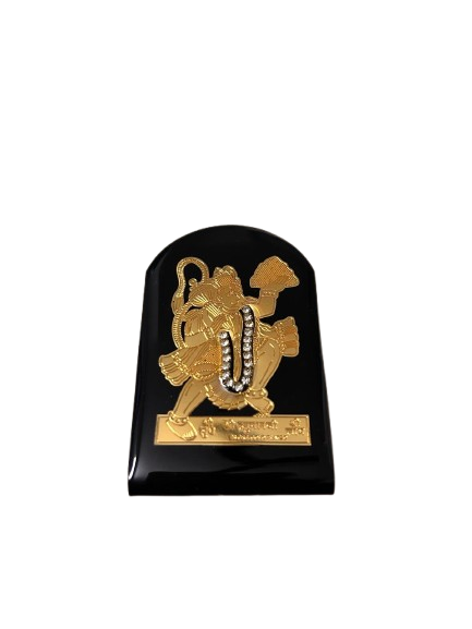 Hanuman Ji for Car Dashboard – Golden Religious Idol on Black Base (7cm x 5cm)